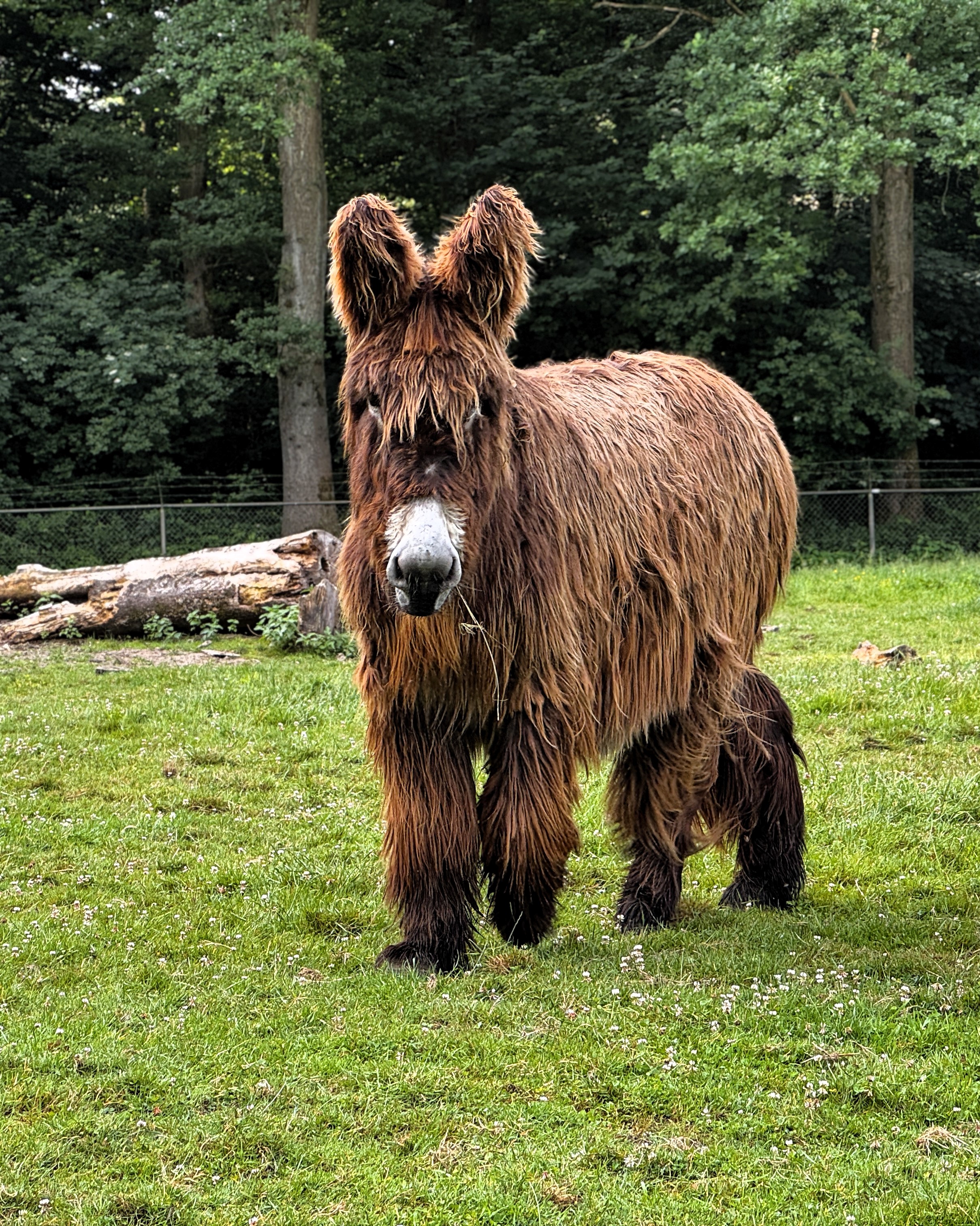 Wist je trouwens dat wij ook een prachtige Poitou ezel hebben? Dit zeldzame ezelsras staat bekend om zijn indrukwekkende formaat en kenmerkende lange, ruige, vaak donkere vacht. Oorspronkelijk komen ze uit de Poitou-streek in Frankrijk en ze zijn een echte blikvanger bij ons!